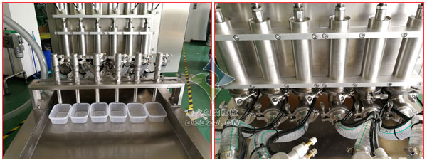 主要功能特點: 雞蛋干蛋液灌裝機采用活塞定量,集機電、氣動于一體,電器和氣動元件選用世界知名品牌,由PLC控制,設(shè)備操作更加穩(wěn)定。該機采用的是六頭自動灌裝機,該機與物料接觸均為不銹鋼制作,拆裝簡單,易清洗,符合食品衛(wèi)生要求。灌裝量和灌裝速度調(diào)整簡單,設(shè)有無瓶不灌裝功能,液位自動控制加料,外形美觀,設(shè)備灌裝嘴設(shè)有防滴漏裝置,確保灌裝無拉絲、不滴漏;不需要更換零件,即可快速調(diào)整更換不同形狀規(guī)格的瓶子,適用性強。 配套設(shè)備及包裝樣品展示: